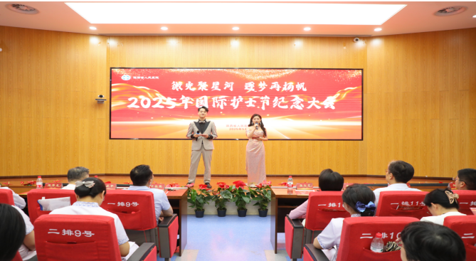 在门急诊楼17楼会议室举行以“微光聚星河 逐梦再扬帆”为主题的2025年国际护士节纪念大会。在院领导班子成员、行政处室及科主任代表、医护代表齐聚一堂,共同庆祝这一重要节日。大会分为“微光成炬·致敬芳华”和“星河共赴·逐梦扬帆”两个篇章。