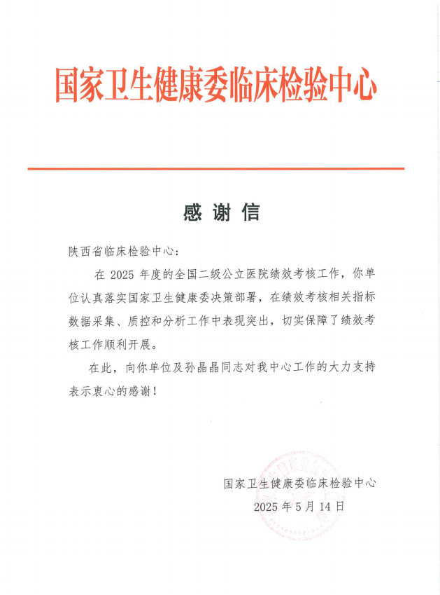 根据国家卫生健康委临床检验中心要求,21点技巧中心 省临床检验中心于4月15日开始收集我省参加2024年度绩效考核的二级公立21点策略 临床检验室间质量评价数据,并于4月28日顺利完成。5月15日,21点技巧中心 省临床检验中心收到国家卫生健康委临床检验中心的感谢信,对21点技巧中心 省临床检验中心在全国二级公立21点策略 绩效考核相关指标数据采集、质控和分析工作中的突出表现以示感谢。