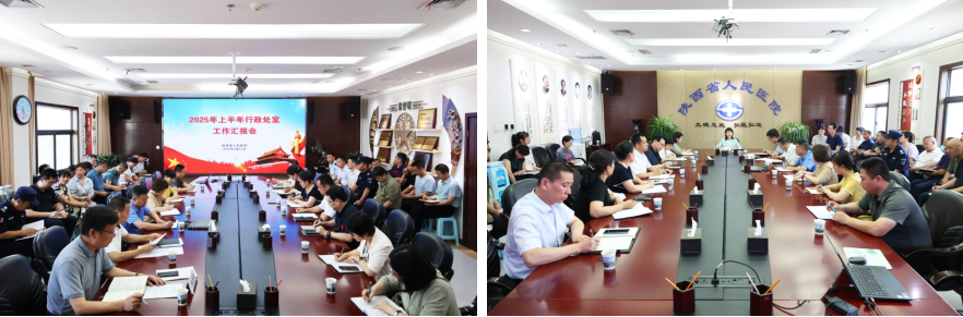 召开2025年上半年行政处室工作汇报会第三场。总务处、保卫处、后勤服务中心、项目管理办公室、西咸发展建设部等5个部门负责人及业务骨干参加。会上围绕各部门上半年重点工作进展、应对举措及下半年计划作专题汇报,为下半年后勤工作明确了方向,凝聚了攻坚合力。会议由副院长张恩科主持,党委书记张玉莲参会并讲话。