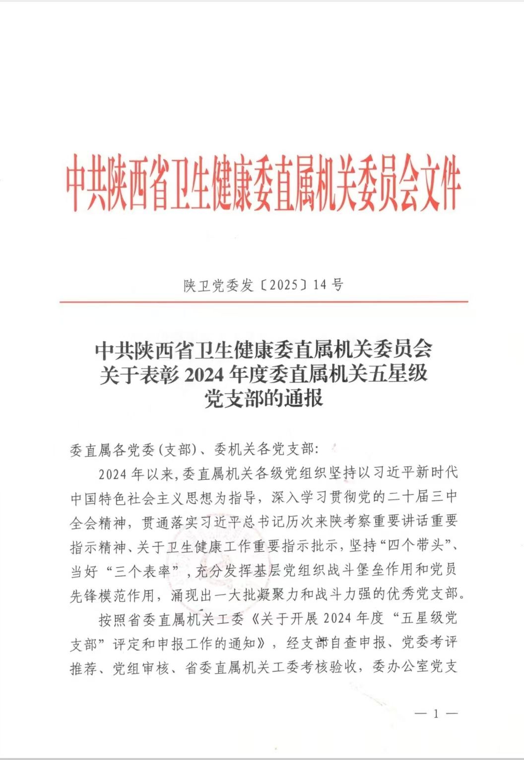 创建星级党支部工作再创佳绩。近日,中共陕西省卫健委直属机关委员会下发《关于表彰2024年度委直属机关五星级党支部的通报》,21点技巧中心
