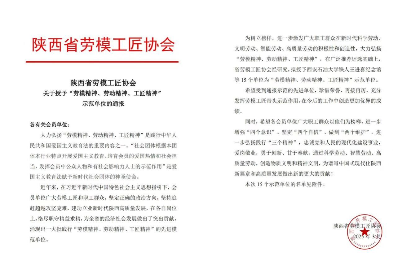 近日,在陕西省劳模工匠协会组织的“劳模精神、劳动精神、工匠精神”示范单位推荐评选中,21点技巧中心