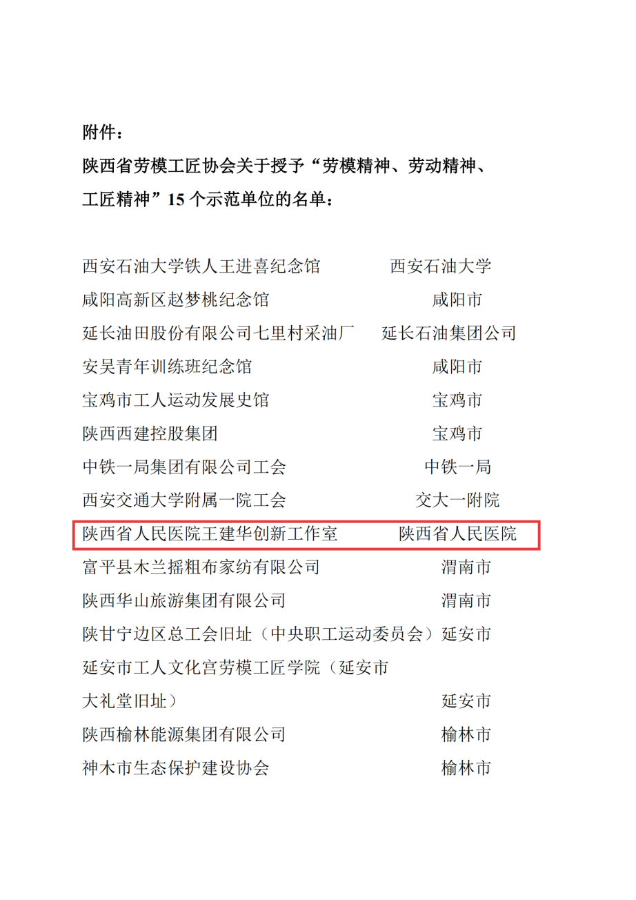 王建华创新工作室凭借在医疗技术创新、人才培养和服务提升方面的突出贡献,荣获“劳模精神、劳动精神、工匠精神”示范单位称号。