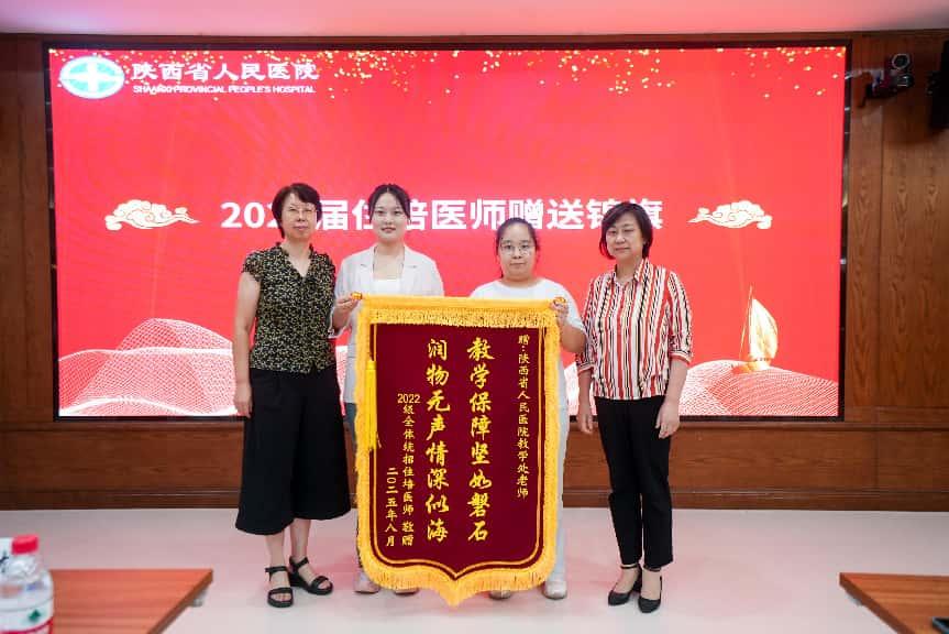 赠送锦旗,表达对带教老师的感激之情。各专业基地指导医师为每位毕业住培医师赠送院史馆纪念封,内含责任导师亲笔书写的临别寄语,寄托了对学员的殷切期望和祝福,将现场氛围推向了高潮。