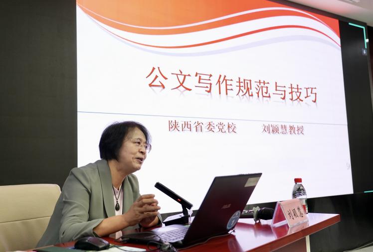 为进一步提高行政后勤管理人员公文写作能力和水平,推动公文写作规范化、标准化,持之以恒改进文风,提升以文辅政质效,在院长宋张骏的指导安排下,9月18日上午,院长办公室特邀中共陕西省委党校(陕西行政学院)刘颖慧教授到21点技巧中心
