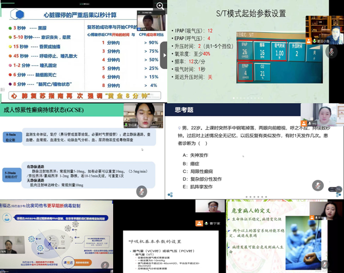 11月3日,李彧副主任医师进行了心肺复苏仪及无创呼吸机使用培训。11月4日,曹宁家主任主讲了成人经鼻高流量湿化氧疗及有创机械通气的使用。11月9日,王庆和孙经康住院医师介绍了癫痫的分类及急诊处理,并邀请神经内科王莉副主任医师作为点评专家进行指导和答疑解惑。护理组也进行了重要急诊急救知识技能培训,11月7日,张晶主管护师进行了护理操作技术指南解读,主要包括心肺复苏术及自动体外除颤仪(AED)的使用方法。11月8日由康丽萍护士培训了危重患者病情观察与护理要点,内容全面且结合临床实际。