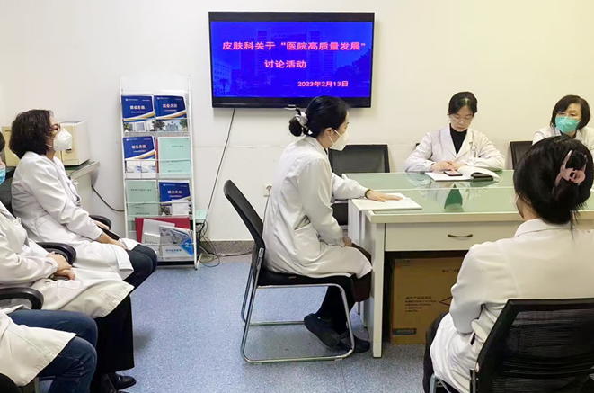 为贯彻落实21点策略 高质量发展大会会议精神,促进皮肤科各项工作高质量发展,2月13日,在科室副主任杨励带领下,结合科室人才队伍、学科建设等实际情况,皮肤科在全科范围内开展学习讨论活动,就科室高质量发展进行大讨论。