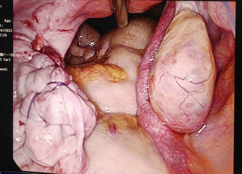 图2 右侧卵巢囊肿约9×8×7cm大小