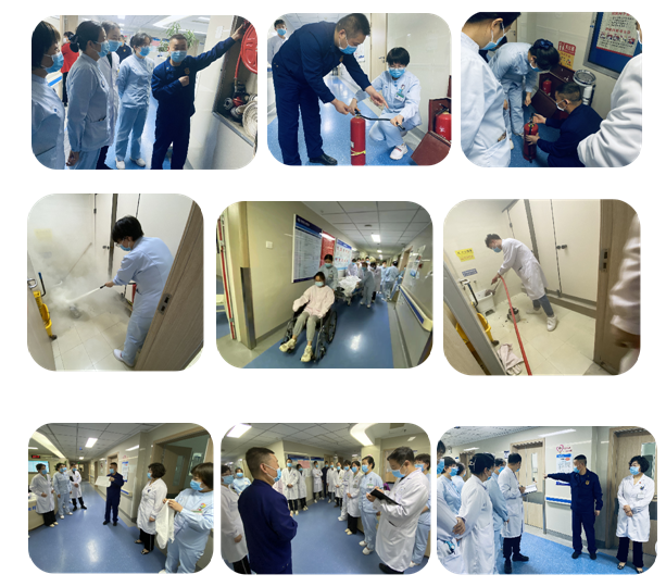 职工的消防安全意识,加强重点科室、特种设备的安全管理,4月21日上午,康复医学科在王继军主任、曹维娜护士长的组织安排下,联合保卫处消防管理科、设备科一起进行高压氧舱突发火灾应急演练。