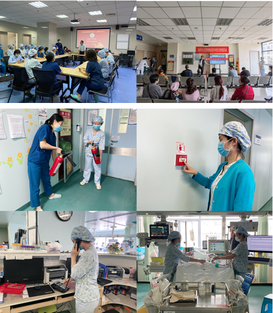 由于ICU的特殊性,绝大部分患者不能下床活动。在科室消防员石青副护士长的组织下,重症医学科全体人员进行了火灾应急预案演练。主要内容包括:病区内发生火灾事故时,消防应急预案的启动;对现场快速转运患者的分工及应急处置;火灾事故区域,工作人员熟悉掌握转运患者的线路和自我保护技能。