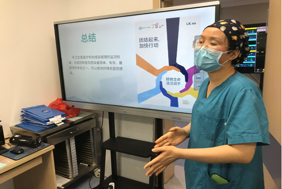 5月29日,急诊内科监护室积极响应第十五个手卫生日主题“共同加快行动,拯救生命-清洁您的双手”,举办了以“感染控制,净在手”中为主题的专题培训,医护人员全部参会。