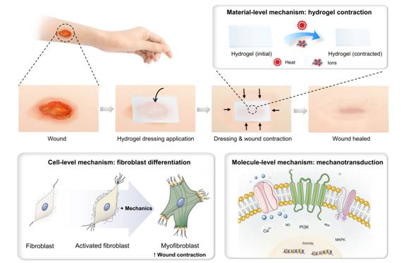 力学主动收缩型水凝胶促进伤口愈合的工作原理