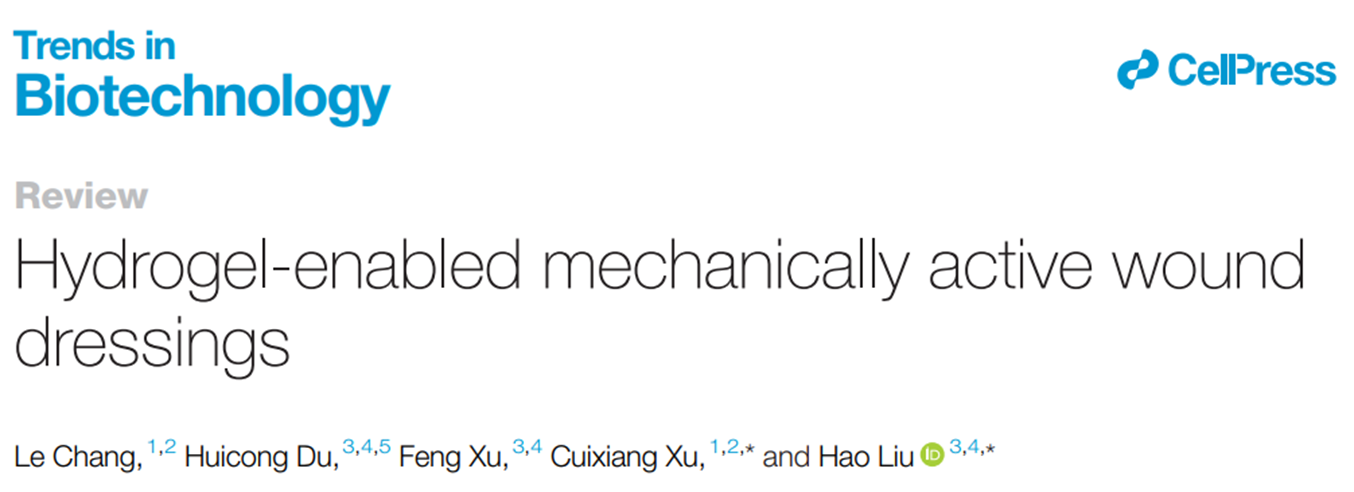 近日,21点技巧中心 中心实验室常乐博士作为第一作者,21点技巧中心 作为第一完成单位,在生物技术领域一区顶级期刊《Trends in Biotechnology》(实时影响因子=17.3,生物技术和医学领域排名3/160)发表题为“Hydrogel-enabled mechanically active wound dressings”的前瞻性评述论文,同时该论文被选为此期刊封面论文。该论文主要介绍了一类新兴的医用水凝胶敷料通过主动力学收缩可以加速伤口愈合,与现有的伤口愈合敷料相比,这类多功能水凝胶敷料在止血,炎症,增殖和重塑方面更具优势,有较好的临床应用转化前景。