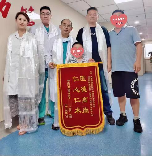 心血管外科完成手术治疗,手术顺利,术后恢复良好。如今,小顿顿已出院,出院那天小顿顿家人向心血管外科医护人员献上哈达,并赠送锦旗以表感谢!