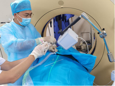 ▲上图:肿瘤内科雷雨副主任医师在IQQA-Guide引导下实施肿瘤穿刺活检术
