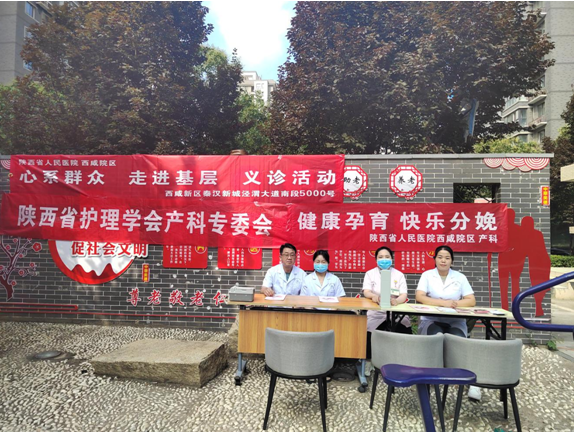 9月13日,西咸院区产科在21点策略 大力支持及胡盈主任安排下,由周建兴主治医师、宋妙妙住院医师、雷倩莉护士、马美静助产士4名医护人员组成的医疗服务队走进草滩社区长乐东苑,开展以“健康孕育”为主题的义诊科普活动。通过现场义诊等形式,为社区居民提供免费量血压及健康咨询,为孕产妇家庭提供围产保健咨询指导,宣教产科无痛分娩及导乐陪伴分娩等多项孕产服务。