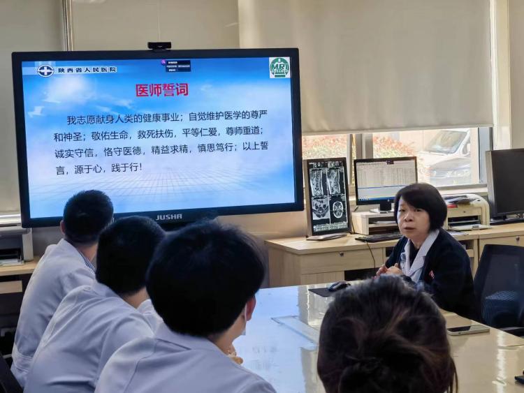 雷晓燕主任代表科室对新职工表示热烈欢迎,从科室发展现状、组织架构、管理制度、文化建设四个方面重点做了介绍。汤敏副主任、张鑫主管技师、李娟主管护师分别以“如何成为一名优秀的影像科医生”、“精准规范,仁心友善”、“磁共振检查护理”为题,讲解诊断组、技术组、护理组的工作范畴、岗位职责、医疗服务质量与要求、不良事件与风险防范措施等。紧紧围绕各组日常工作的同时,着重强调医、技、护之间的团结协作、相互补位、勇于担当的团队精神。
