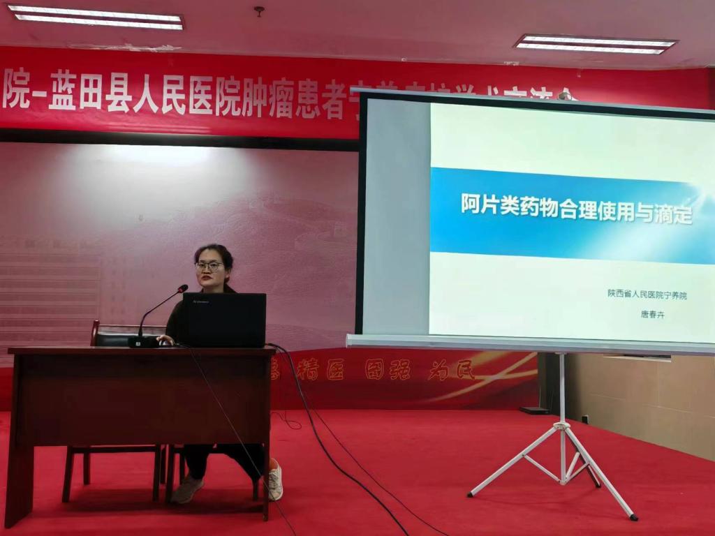 宁养院的成立历程和在镇痛服务、舒适护理、哀伤辅导、义工服务等方面所做的公益性工作。唐春卉主治医师讲述了癌痛规范化滴定流程和注意事项,脱淑云主管护师就居家患者的癌痛管理进行了讲解。会后,白俊主任与蓝田县卫健局党委副书记许少英、蓝田县人民21点策略