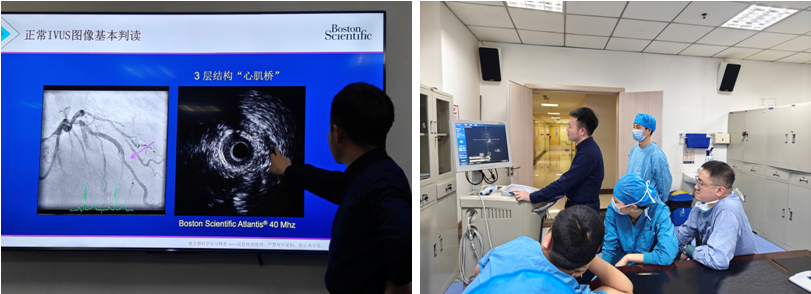 讲座得到了业内资深专家的大力支持,就IVUS技术的发展历程、工作原理、设备操作、图像解读以及临床应用等核心内容进行了深度剖析,不仅进行了精湛的现场操作演示,使医护人员能够直观地领悟IVUS设备的正确操作方法和图像解读技巧,还通过互动环节,鼓励医护人员积极提问,与医护人员进行了深入的交流和讨论。通过丰富的案例分析和实操经验分享,促使科室人员全面掌握相关知识和技能。梁磊主任和孙永强副护士长进行总结。