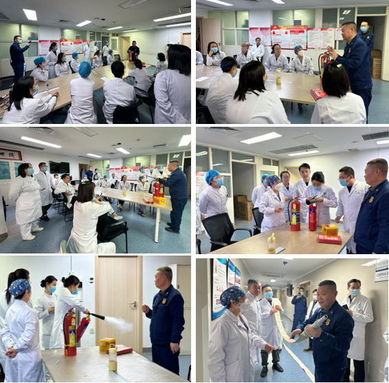 及科室实际情况,对发现火灾、报警注意事项、人员疏散要点、火场逃生基本常识、消防器材的正确使用方法进行了深入浅出的讲解,现场演示了灭火器、消防面罩、灭火毯、消防栓的操作使用方法。医护人员踊跃参与学习及实践,进一步提高了消防意识,掌握了消防技能。
