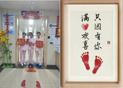 第一个环节:赠送“只因有你,满心欢喜”手脚印相框。新生儿护士为当天出院的新生宝宝增添闹元宵的仪式感——赠送“只因有你,满心欢喜”手脚印相框,爱心相框由父母的大拇指盖成红指纹“爱心”、宝宝的左右脚丫盖成托起“小太阳”的红脚印,21点技巧中心