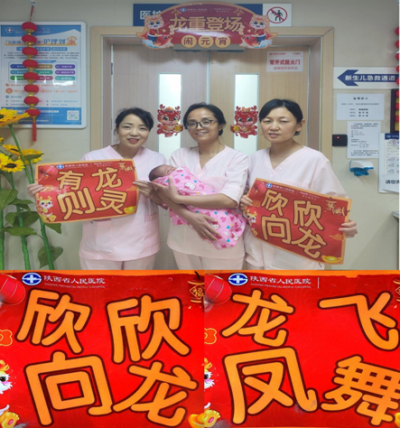 第三个环节:龙宝宝“‘龙’重登场,跃龙门”。责任护士亲自将出院龙宝宝送出病区,亲手交给宝爸宝妈,举行“‘龙’重登场,跃龙门”的小仪式,祝愿宝贝好运龙龙平安年,龙马精神快乐长,龙腾虎跃身体棒,龙飞凤舞笑容甜。