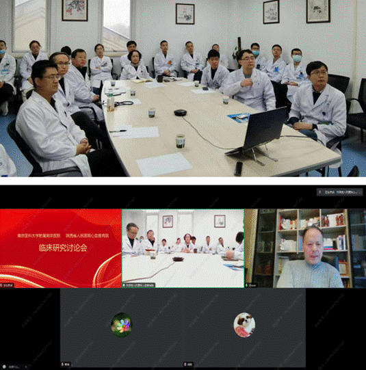 心血管内科特聘专家陈绍良教授作为主讲人进行连线讨论,寿锡凌主任主持会议,学科办田应选副主任及学科医护团队全程参会。