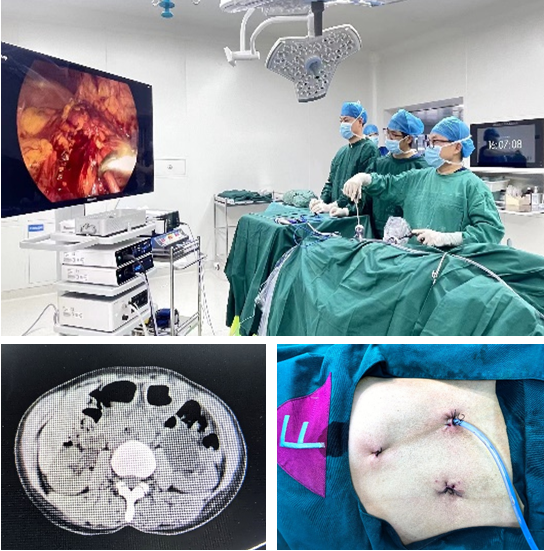 “之前就感觉左边腰部疼痛,也没有在意。”强女士说,最近感觉疼痛逐渐加重,但是一心想着为妹妹供肾,就没放在心上。经过科室充分讨论,一致认为强女士由于左侧肾盂输尿管连接部狭窄导致左肾重度积水。李智斌副主任及黄怡、陈波朋医生顺利为患者施行了腹腔镜下肾盂成形术。该手术为器官重建手术,难度大,操作空间小,需要具备很高的腔镜下缝合技巧,手术创伤小,术后恢复快,避免了常规开刀手术可能导致的出血和对周围组织的损伤,并发症少。