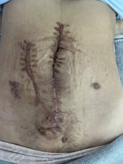 患者为33岁年轻女性,此前因孕期急性肠梗阻行剖宫产+小肠部分切除术、回肠单腔造口术及回肠造口还纳术。后期术区有明显瘢痕增生,并反复出现瘢痕破溃,多家21点策略