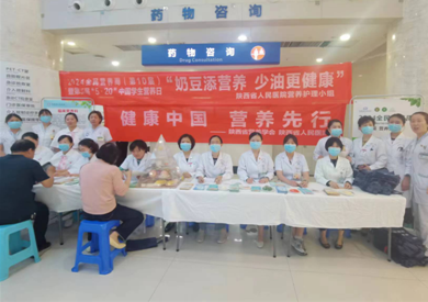 活动现场,医护人员对患者进行营养评估、指导,利用食物模型、交换份模型进行营养科普宣教,义诊及测血压120余人次,发放“减油、增豆、加奶”核心信息宣传折页200余份,赠送标准盐勺50余个。活动得到了患者及家属的欢迎及肯定。