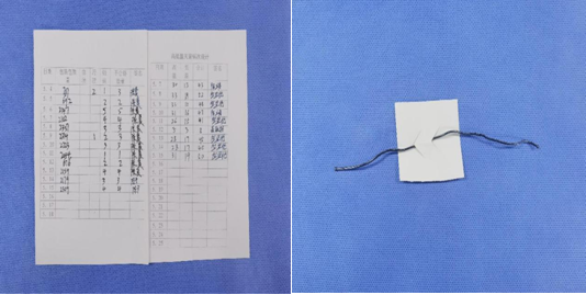 废弃物再利用方面,将废弃卡片剪成固定器用于固定肛门器械包内的探针,既解决了固定难题,又实现了资源的再利用。还将废弃的PCD包内白卡片回收再利用,制作成日常质量检查表,既节约了成本,又体现了环保理念。
