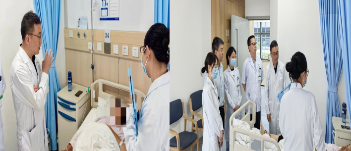 在医务处长刘鹏副处长及神经内科郭生龙副主任等一行陪同下,吴子明教授参观眩晕门诊、病房建设后,对疑难眩晕患者进行会诊,详细询问患者的病史、目前治疗方案和治疗情况,仔细查阅了患者的辅助检查结果,结合临床经验,从疾病的诊断、用药规范、观察要点,治疗要点以及前庭康复等方面对患者的治疗及康复方案提出指导性建议,展示了一场生动的现场眩晕诊治范本,提供了规范的眩晕临床诊疗思路。