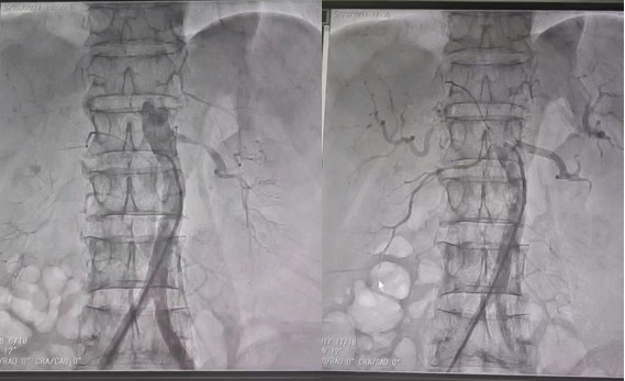 西咸院区肾脏内科、微创介入科成功协作,为一位左肾动脉重度狭窄患者实施了院区首例左肾动脉支架成形术,挽救了患者肾功能,有效改善终末期肾脏病进展,延缓了血液透析进程。