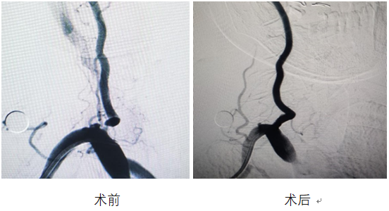 神经内科介入团队为患者在局麻下行经桡动脉入路右侧椎动脉球囊扩张支架植入术,手术过程顺利,术后有效改善了后循环供血,患者直接下床自如活动,头晕头昏症状明显好转,并降低了脑卒中风险。