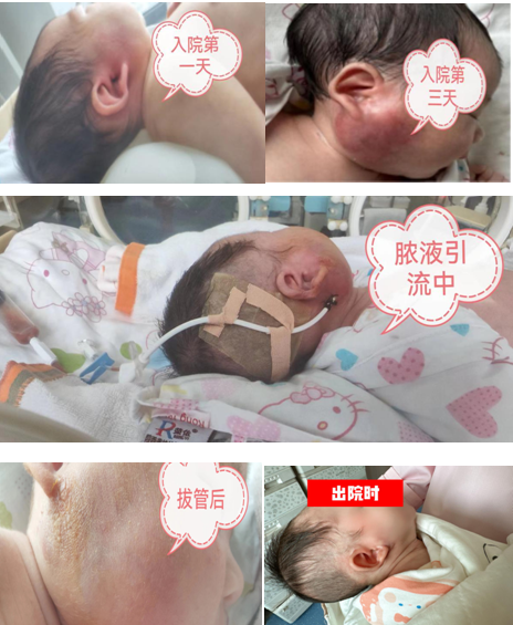 入院后,新生儿科迅速行动,主治医师王娟娟认真查体发现患儿口腔腮腺管口按压后有脓液溢出,高度怀疑化脓性腮腺炎。王小娟护士长立即安排单间隔离,专人专护;雷宏涛主任组织口腔科、超声科专家进行多学科会诊。经过仔细检査和讨论,最终结合分泌物培养及药敏试验结果,确诊为新生儿化脓性腮腺炎,并在超声科的定位下穿刺引流出脓液约20ml。最终,患儿康复出院,重新回到妈妈的怀抱。