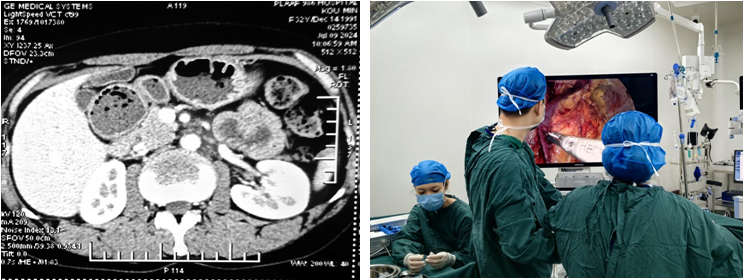 该例患者左侧肾上腺肿瘤约6cm大小,且分泌活性很强,对手术操作和术中麻醉监护提出了极高要求。面对这一高复杂性的手术,移植泌尿外科李智斌主任团队和麻醉科杨瑞主任团队经过多次沟通,对患者进行了周密的准备和详细的病情评估。在手术前期,对患者采取了充分扩血管、扩容、补液等治疗措施,以确保患者在手术前达到最佳状态。在手术过程中,杨瑞主任及手术团队时刻关注患者的生命体征变化,特别是对患者术中血压平稳控制。最终手术顺利完成,患者顺利清醒。循环稳定,仅伤口微痛能忍,安返病房。