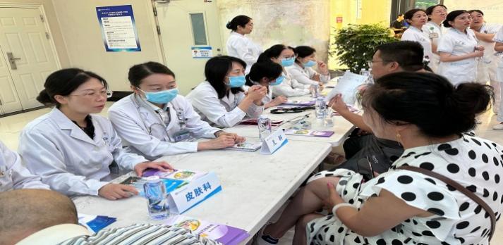 多科联合在门诊大厅成功举办了一场以“关爱皮肤健康,共筑美好生活”为主题的义诊活动。本次活动由皮肤科牵头,携手耳鼻咽喉头颈外科、呼吸与危重症医学科、风湿免疫科、中医科以及药学部、儿科等多个科室,共同为公众提供专业、全面的健康咨询服务。