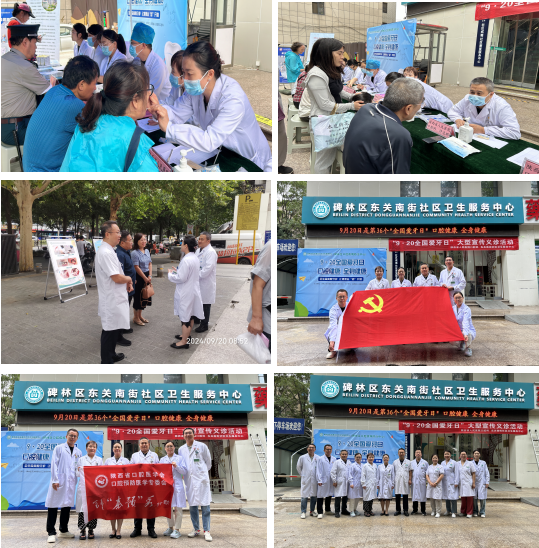 庆祝中华人民共和国成立75周年系列活动号召,口腔科郭亚丽主任带领另一支专业且充满爱心的义诊团队,在碑林区关东南街社区卫生服务中心(碑林区口腔疾病防治中心)开展义诊宣传活动,将健康服务直接送到居民的家门口。义诊专家为社区居民提供了全面的口腔健康服务,现场发放了口腔健康宣传手册,细心地检查、耐心地解答,为居民们带来了丰富的口腔健康科普知识,让健康理念深入人心,提升了居民的口腔健康素养。此次活动也引起了碑林区卫健系统的高度重视。碑林区卫健局副局长、碑林区疾病预防控制局局长赫建平在现场指导。赫建平局长对义诊团队的辛勤付出和高效工作给予了高度评价,他表示,义诊活动直接惠及社区居民,增强了他们的健康意识,为碑林区口腔健康事业的发展做出了积极贡献。