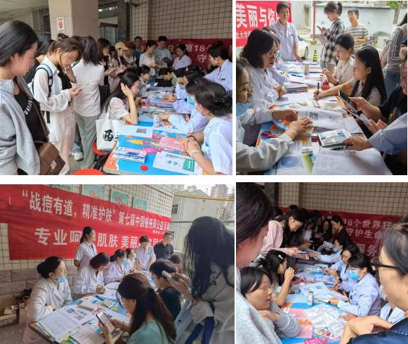 痤疮是一种常见的皮肤问题。大部分人对痤疮的认知往往只停留在表面的红肿和疼痛,但痤疮还可能引发一系列的后遗症,如色素沉着、疤痕形成等。因此对于痤疮的防治更需要深入的了解和科学的处理方式。此次活动选在人流量较多的食堂门口。活动现场,皮肤科的专业医生进行面对面义诊,医务人员同时通过线上咨询、在线科普讲座和战痘小课堂、设置痤疮科普教育专区、皮肤护理宣传册等形式,通过生动有趣的图文和视频,让大家更深入地了解痤疮的成因、症状和防治方法。活动中还制作了宣教二维码,师生可直接扫描二维码查看,方便快捷,实用性强。此外,为了给师生们提供更优质的服务,科室还为前来咨询的师生提供了微信联系方式,护理人员会专人一对一微信解答患者问题,实现线上,线下一条线服务。