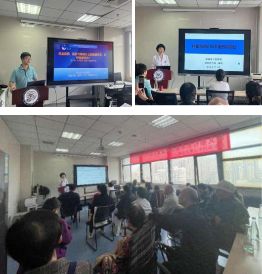 会上,专家们为广大的患者及其家属带来专业的医疗知识和治疗方法。毛之奇教授以其深厚的学术背景和丰富的实践经验,分享了神经调控治疗在神经系统疾病中的应用和探索,神经调控治疗在帕金森病上得到了广泛应用,能有效控制神经系统的活动,改善患者的症状。康蓓副主任医师分享了帕金森DBS术后药物调整,指出手术后的药物调整是恢复过程的重要一环,以内科的角度帮助患者更好地恢复生活自理能力,提高生活质量。