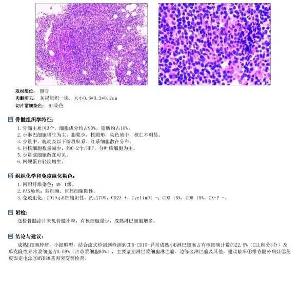 牛奔医师指导进行骨髓活检术及流式免疫分型检查,结果提示CD5-CD10-成熟B细胞肿瘤,流式检测到单克隆异常浆细胞,随后进一步完善了血清蛋白电泳、免疫固定电泳及MYD88基因检测,检测到单克隆性IgM,MYD88阳性,最终诊断为华氏巨球蛋白血症,目前给予泽布替尼治疗中,患者病情得到改善。该疾病的成功诊治,标志着富平县21点策略