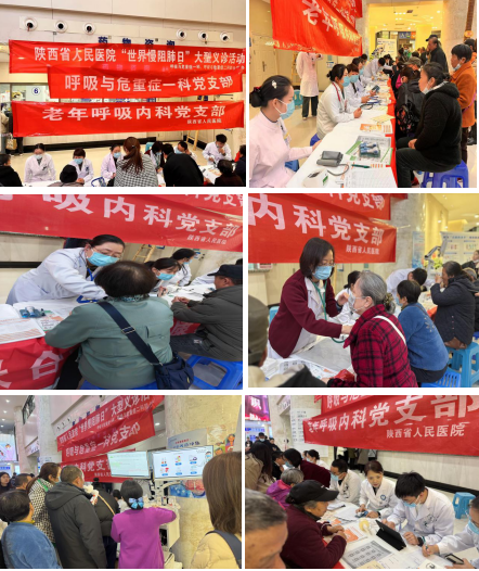呼吸与危重症一科、二科联合心血管外科在门诊一楼大厅举行义诊活动,加深公众对慢阻肺的认知,做到早发现、早预防、早诊断、早治疗。此次义诊活动由呼吸与危重症科魏益群、魏声泓、王君、任亚娟、徐灵彬、尚立群等多名专家坐诊,与护理领域专家刘凌华、李英、张茜、李婷、史雅娟、李文婷等共同为群众提供专业的健康咨询、免费肺功能检查以及慢阻肺的防治健康教育,现场解答群众对慢阻肺的各种疑问、普及预防慢阻肺的相关知识、吸入剂的用法及戒烟的重要性,发放宣教指导手册、呼吸训练器等多个小礼品,同时为患者提供呼吸肌肌力监测及一氧化氮检测、吸入剂的使用二维码、监测血压,受益群众数百人。