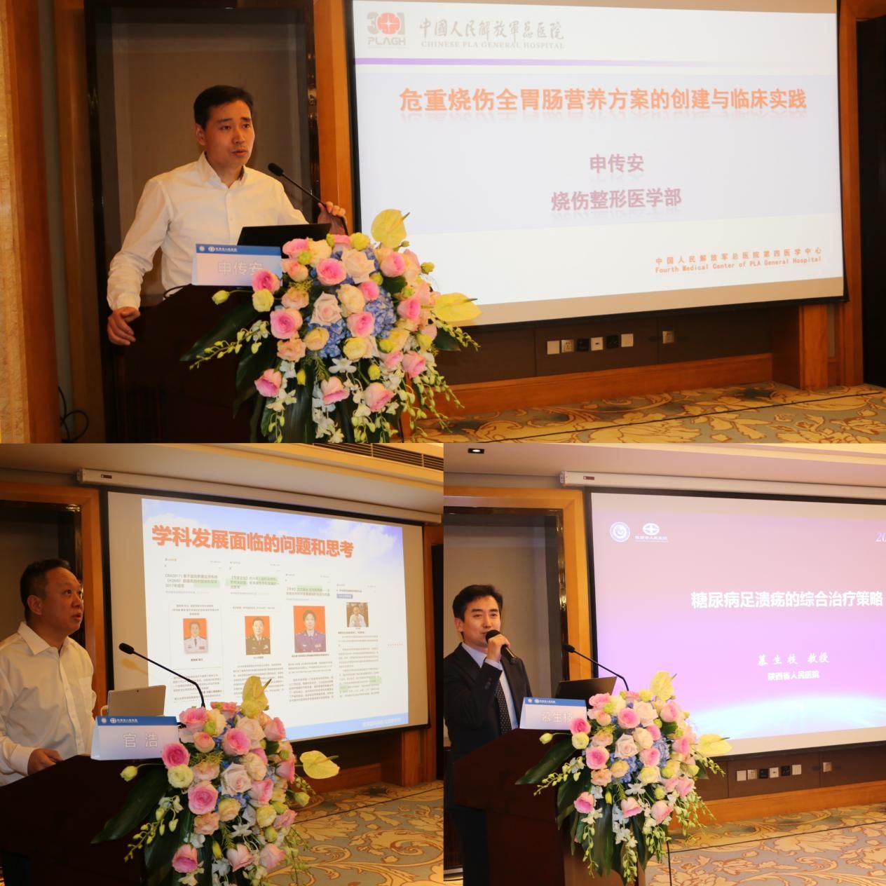 在学术交流环节中,中国医师协会烧伤科医师分会会长申传安教授、中华医学会烧伤外科学分会秘书长官浩教授和慕生枝主任分别做了专题汇报。申传安教授带来了题为《危重烧伤全胃肠营养方案的创建与实践》的报告,强调了营养在烧伤患者恢复过程中的关键作用,包括能量和蛋白质的合理摄入、菌群失调的管理,以及营养支持对减少并发症的重要性,为参会者提供了宝贵的临床指导。官浩教授讲授了《胸骨裂开的外科治疗》,强调在胸骨裂开的外科治疗汇报和讨论中可聚焦于医疗技术和患者护理的创新与合作,覆盖了外科手术、皮肤处理、感染控制、伤口管理及术后康复等多领域,为参会者提供了全新的治疗思路。慕生枝主任带来《糖尿病足溃疡的综合治疗策略》,分享了团队在糖尿病足治疗的经验,强调多学科合作的重要性。