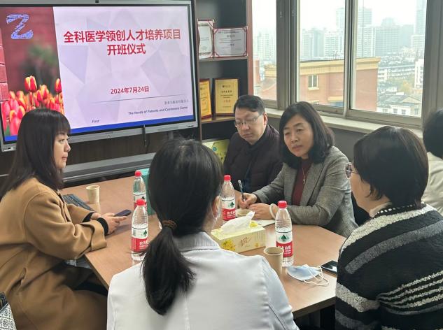 团队参观了解放路院区全科医学科病房及教学门诊,围绕病房精细化管理、教学门诊质量提升、全科业务拓展特色等进行交流。在座谈会上,大家讨论热烈,院长助理宋震亚教授因公务不能到现场,专门安排视频讲话交流,讲述了全科医学科大的框架和发展。童钰铃业务副主任详细介绍了全科医学科从2013年建科以来的发展历程,科室从医教研协同发展布局,使全科疾病管理理念深得人心,通过教学门诊延续了出院病人的精细化管理。教学副主任毛玲娜从师资分层、实战培养、全程质控三方面对教学工作进行详细介绍,分享了创新师资管理模式,通过积分制量化对师资进行分层和调整,既激发了教师的教学热情,又保证了教学待遇;针对住培医师进行的双师陪伴增加相互了解及促进教学,通过“这儿”聊病例、共同参与科普书籍编写、教学活动评优比赛、基于真实病例的出科考核等系列丰富的教学活动,提升了规培医生学习的主动性和热情,极大提升了岗位胜任力。