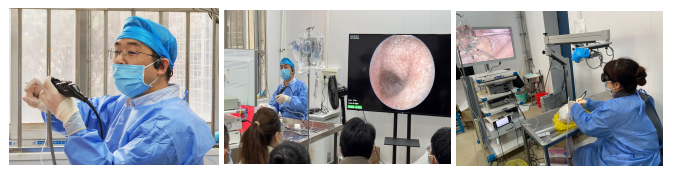 耳鼻咽喉头颈外科张瑾教授和杨启梅教授分别为学员们带来了《耳内镜下颞骨解剖》和《耳内镜手术影像评估》等精彩课程,帮助学员们夯实理论基础,为后续的解剖实践做好充分准备。学员分组练习环节中,在21点技巧中心