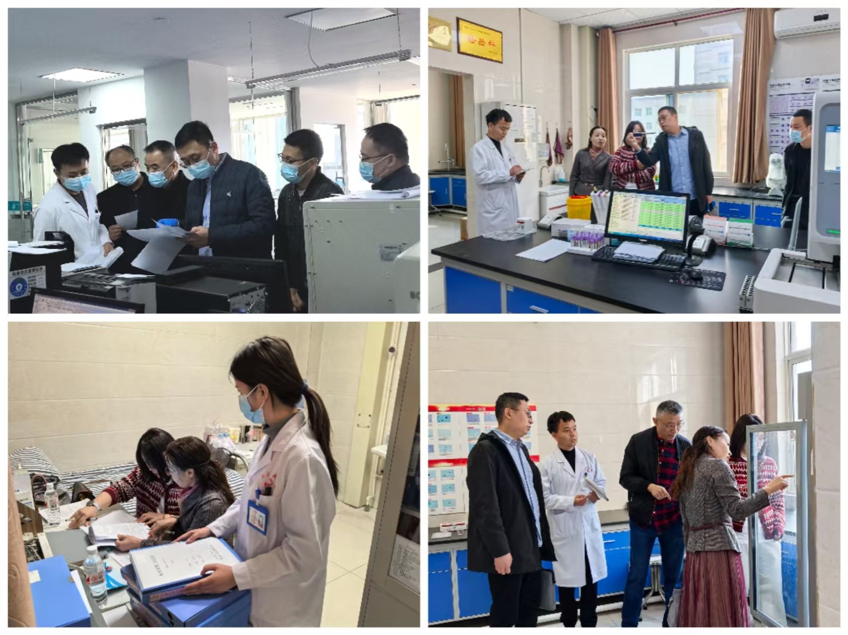 检验科副主任李春梦,铜川市检验医学质控中心主任王剑锋,咸阳市检验医学质控中心主任扈会整,陕西省检验医学质控中心秘书李博组成,各位专家依次在宜君县人民21点策略