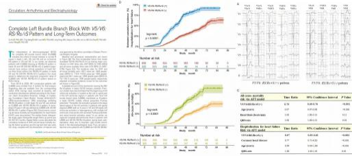 科研工作再出新成果,心内一科心律失常专业组赵娜主任医师,研究生胡苏、王婷等自主创新的临床原创研究“CompleteleftbundlebranchblockwithV5/V6 :RS/Rs/rSpattern and long-term outcomes ” 登上心脏 电生理领域头部期刊《Circulation: ArrhythmiaandElectrophysiology》。
