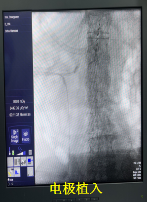 西院二病区尚亮主任团队在了解到患者的情况后,卫娜副主任立即组织多学科专家会诊。鉴于患者的特殊情况,神经外科缪星宇主任与张翼博士等团队成员,经过精准评估和充分讨论,决定采用脊髓电刺激镇痛疗法。该疗法通过在脊髓硬膜外腔植入电极,将外界电刺激传递到脊髓,干扰疼痛信号传导,从而达到缓解疼痛的目的。其具有创伤小、可逆、可调节等优点,特别适合高龄、身体状况较差的患者。