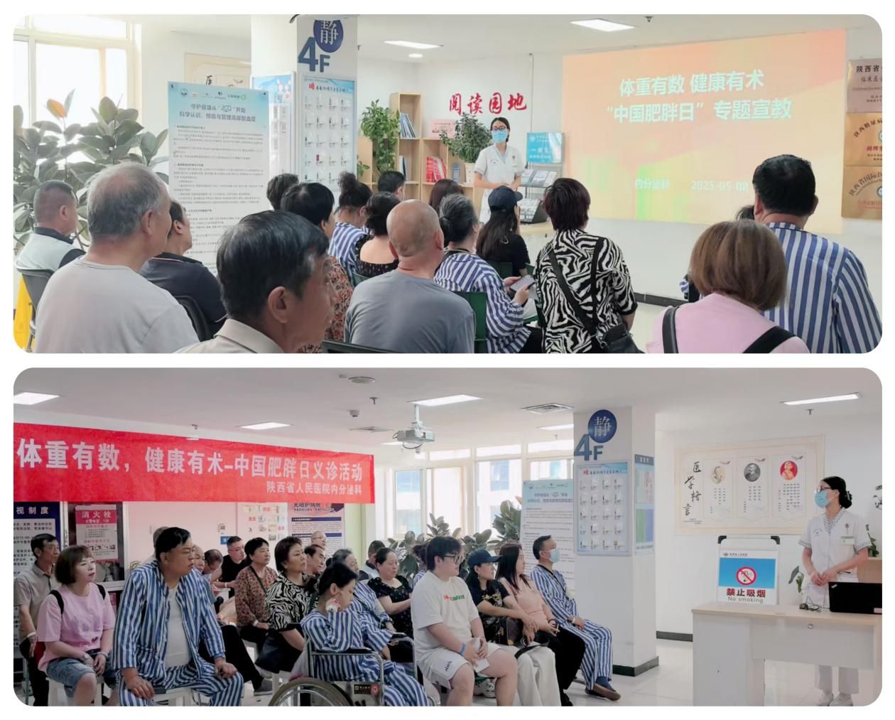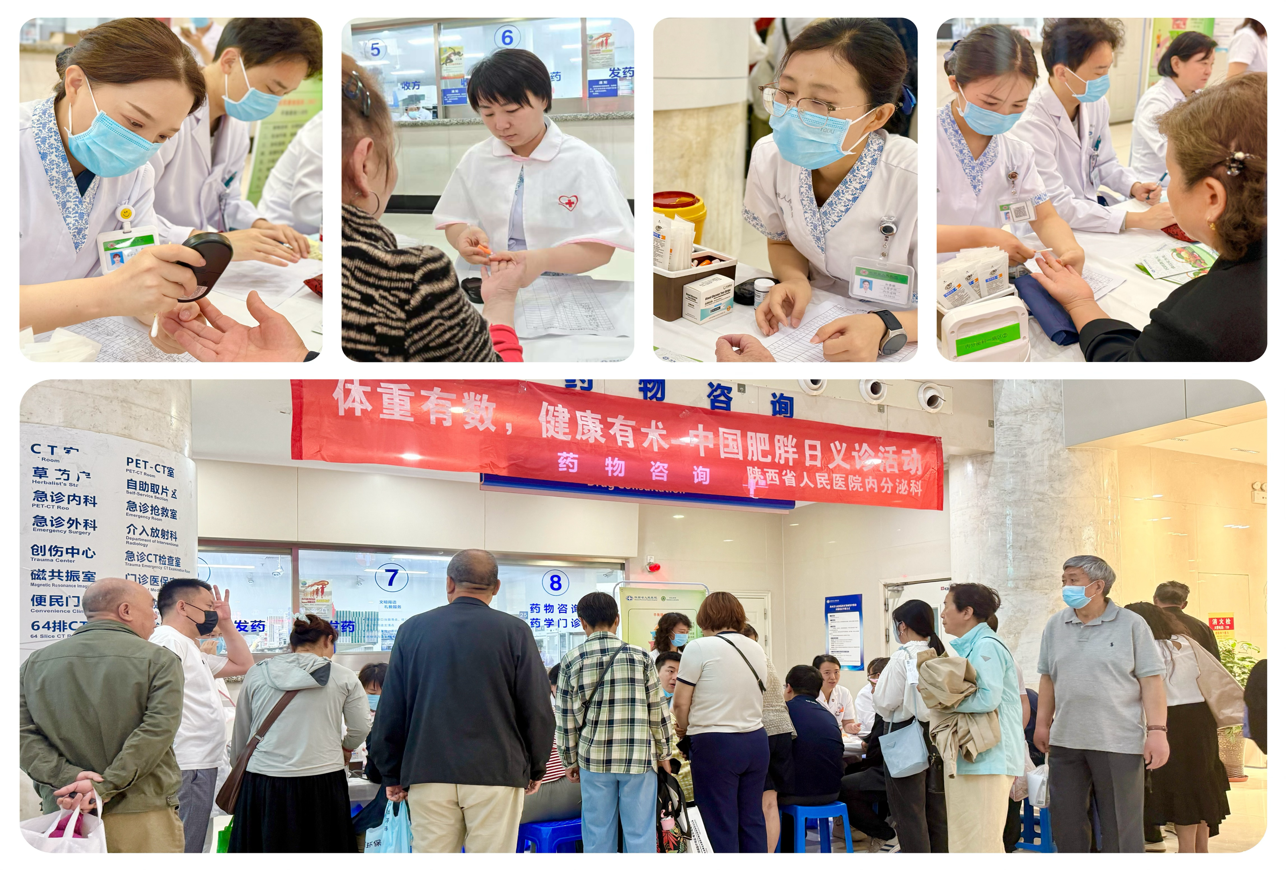 2025年5月11日是第八个“中国肥胖日”,今年的主题为“体重有数,健康有术”,直击超重/肥胖这一全球性健康危机。为响应国家“体重管理年”号召,推动慢性病防治关口前移,内分泌科联合营养科、普外科、针灸科、中医科、公共卫生科等多科室,于5月9日在主院区及西咸院区同步开展多学科义诊及科普宣教活动,助力公众科学管理体重,构建健康生活新生态。