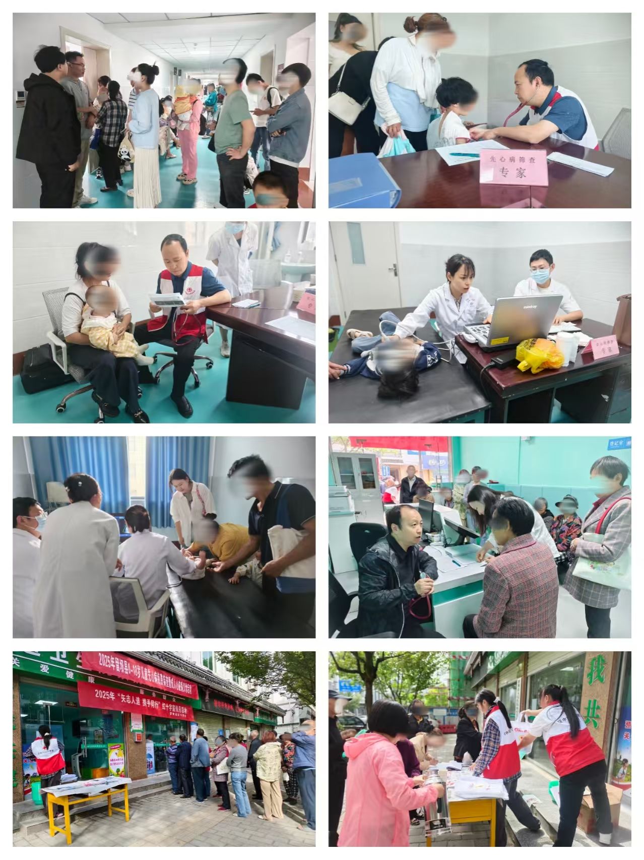 超声科亢春苗副主任医师操作便携式彩超设备,精准捕捉每处心脏结构异常。心血管外科基金办公室工作人员现场为确诊且符合手术指征的先心病儿童家属,耐心讲解基金救助申报流程。