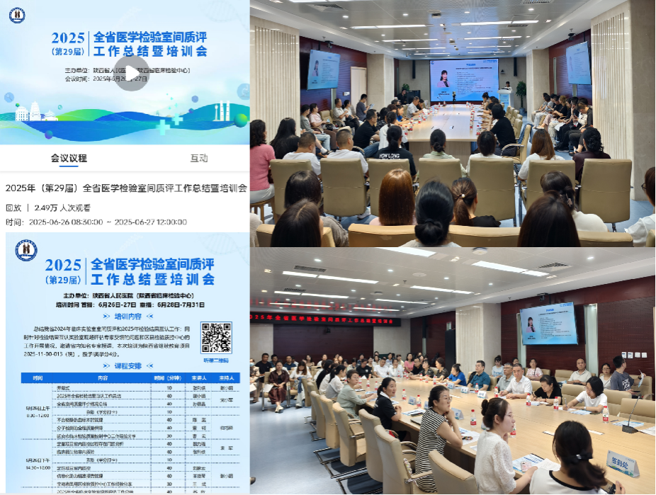 举办“2025年(第29届)全省医学检验室间质评工作培训会”,陕西省临床检验中心和检验医学质量控制中心张利侠主任主持。会议采用“线上+线下”相结合的方式举行,现场参会人员80余名,线上观看直播人员2.4万人次。